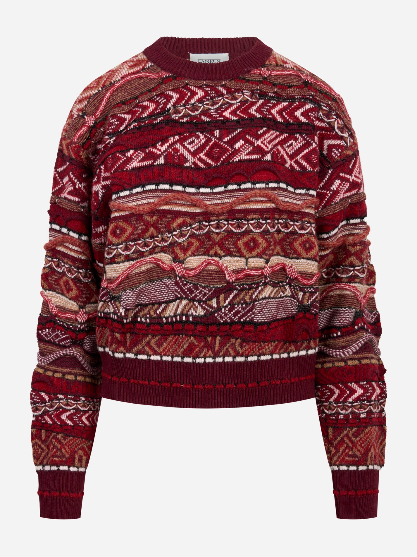Maglia girocollo cropped con lavorazione jaquard bordeaux