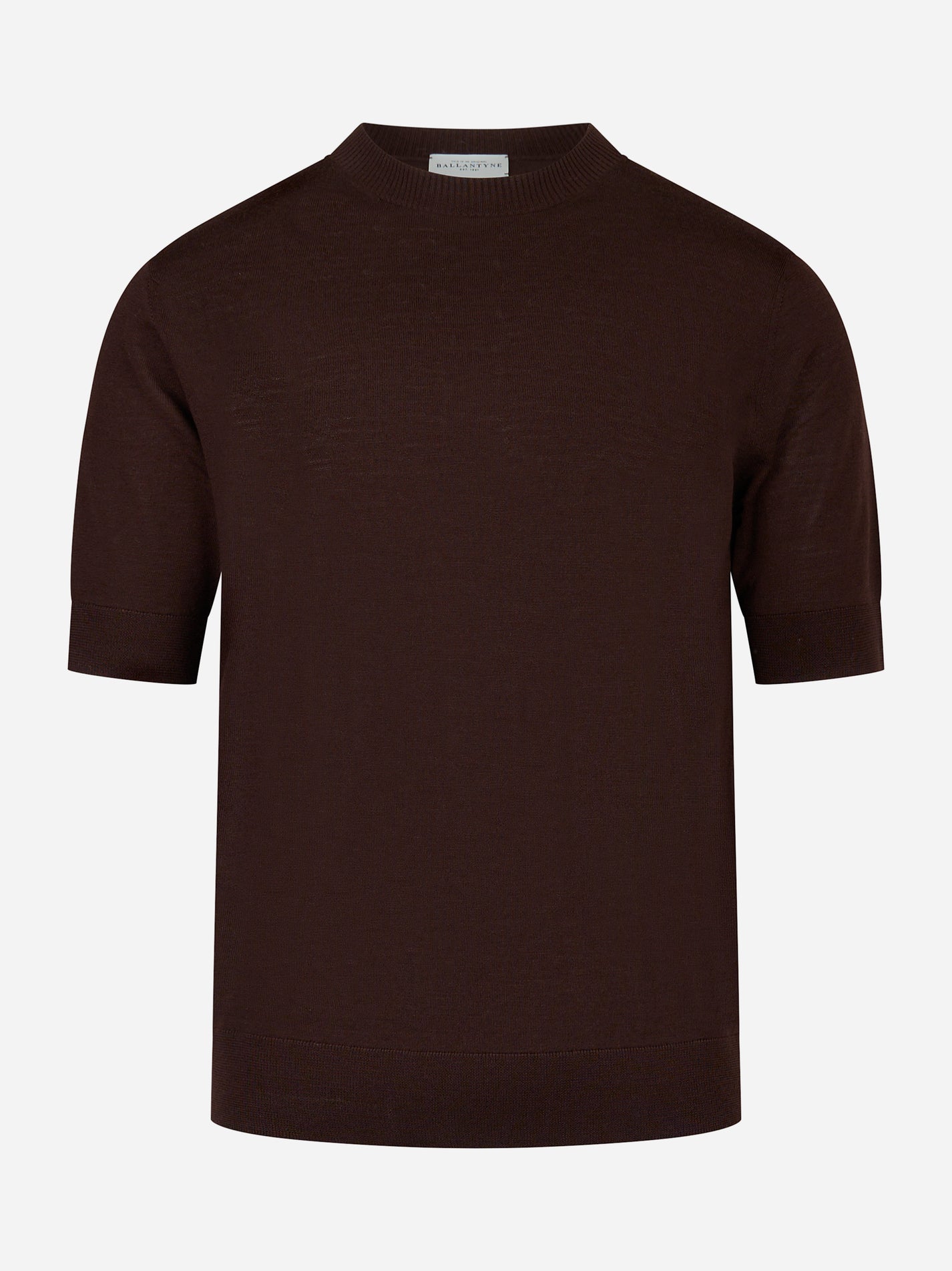 Maglia girocollo manica corta in lana finezza 16 Marrone