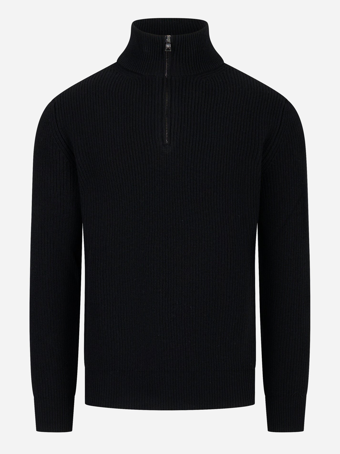 Maglia mezza zip in lana a coste Nera