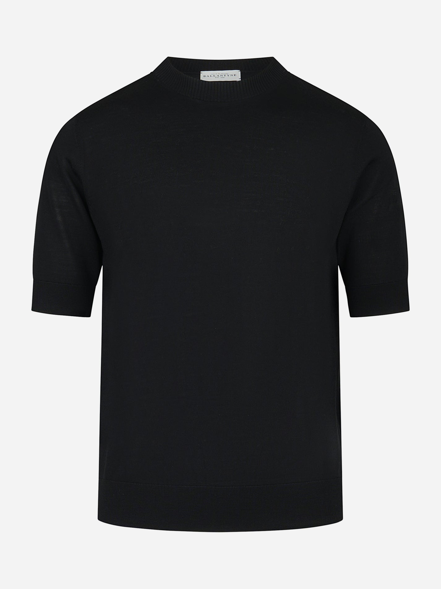 Maglia girocollo manica corta in lana finezza 16 Nera