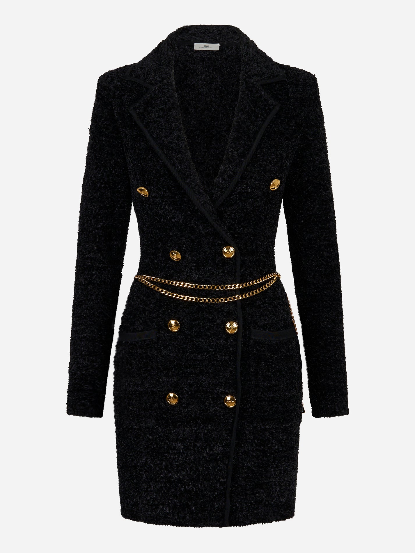 Abito in ciniglia bouclè con cintura Nero