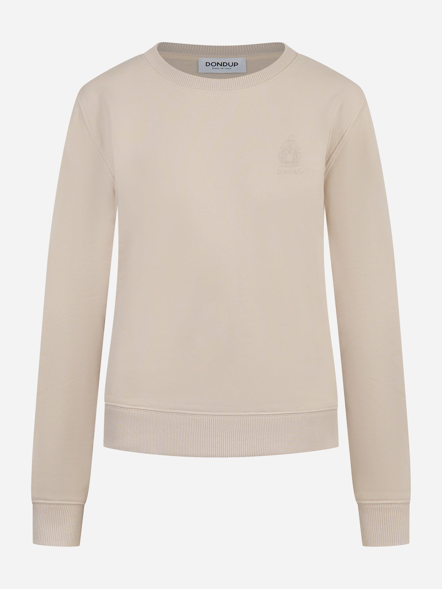 Felpa girocollo slim a maniche lunghe con logo ricamato sul petto Beige