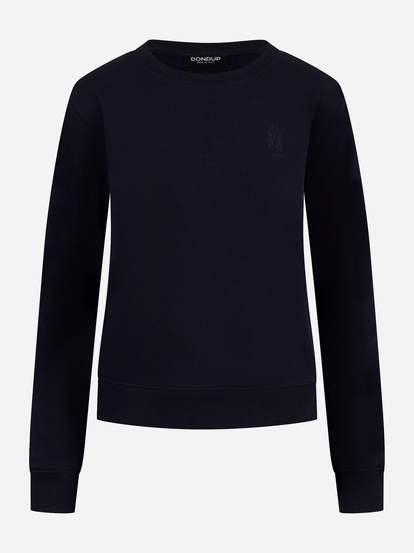 Felpa girocollo slim a maniche lunghe con logo ricamato sul petto Blu