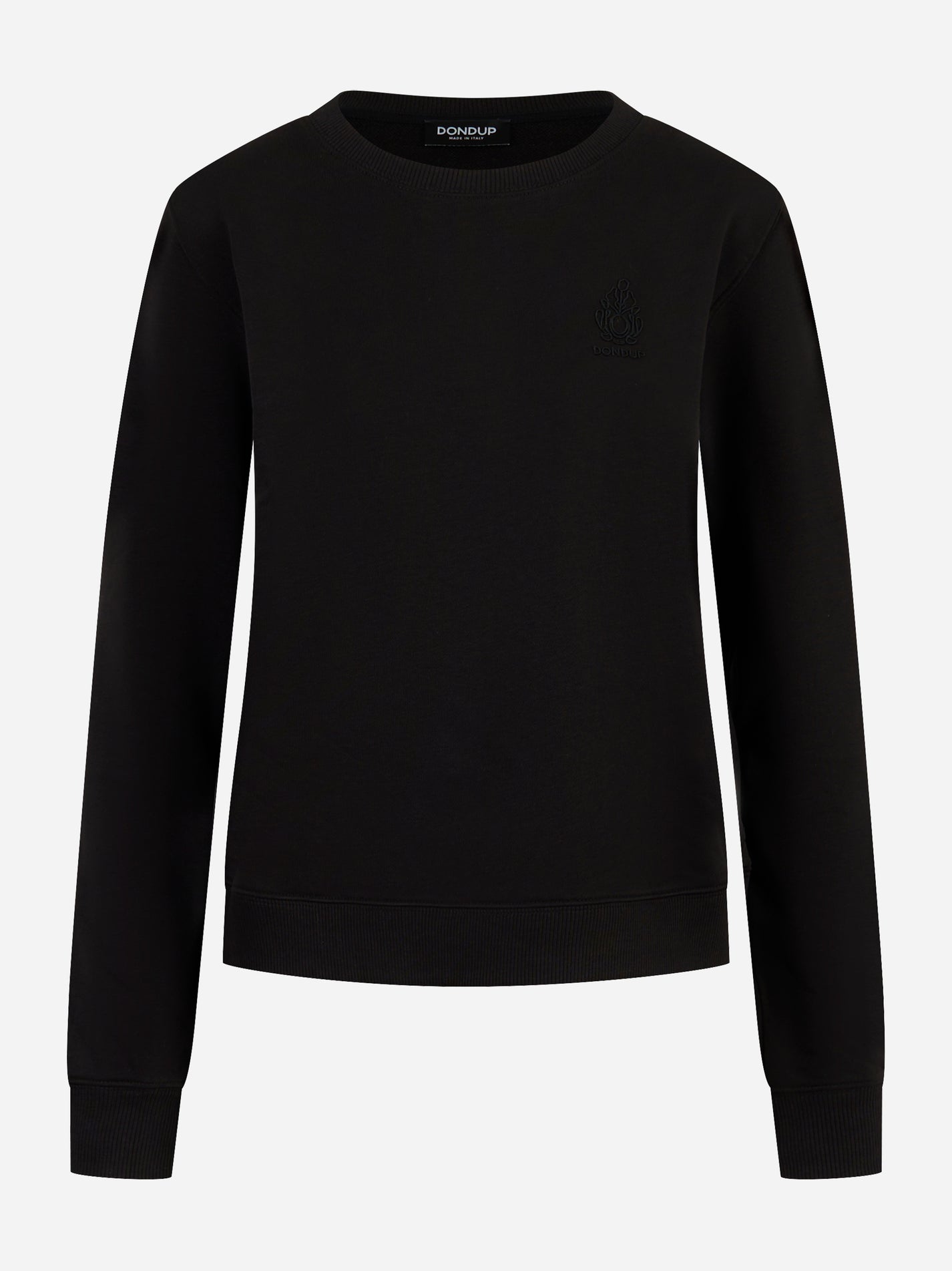 Felpa girocollo slim a maniche lunghe con logo ricamato sul petto Nera