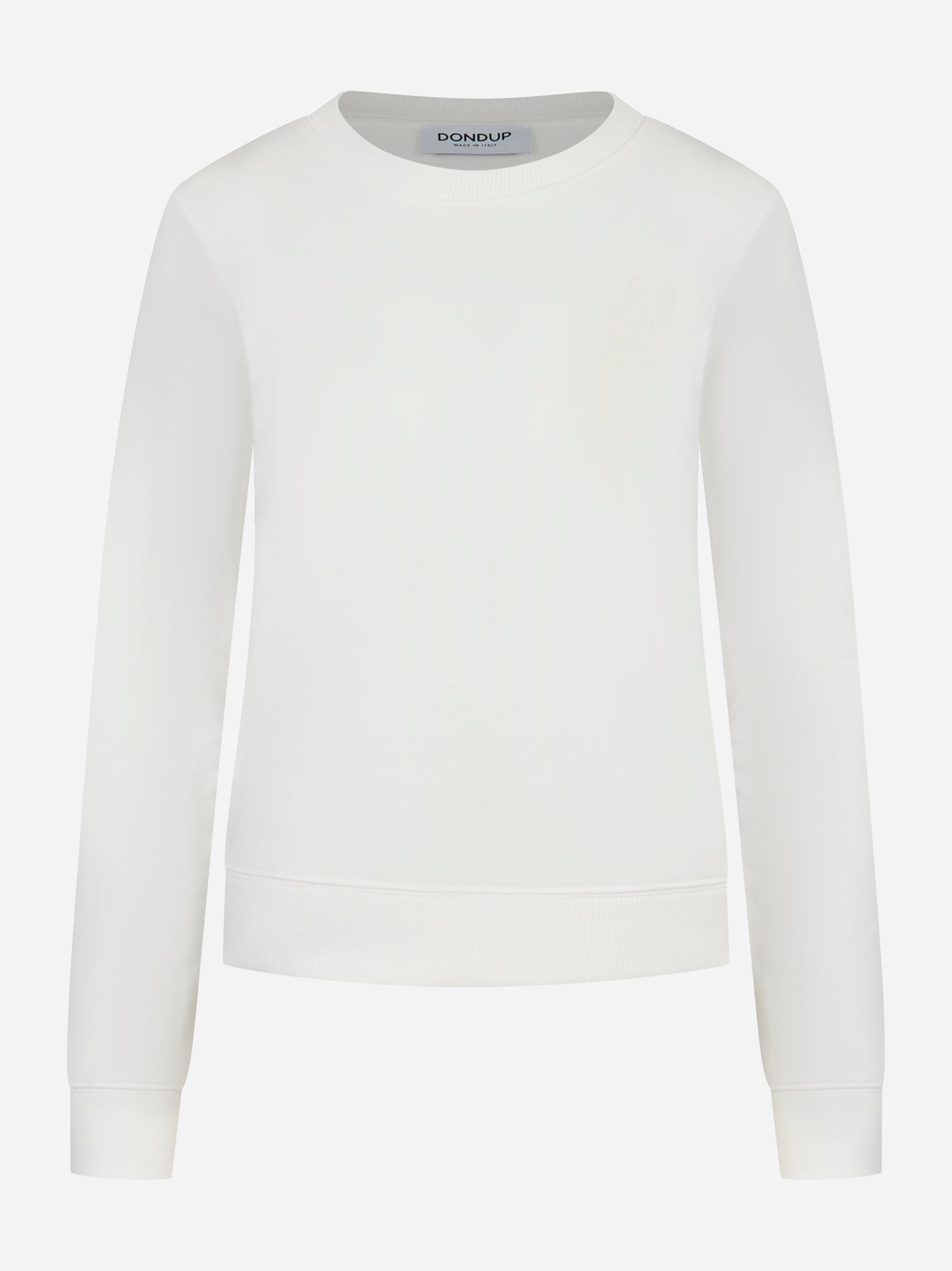 Felpa girocollo slim a maniche lunghe con logo ricamato sul petto Bianca