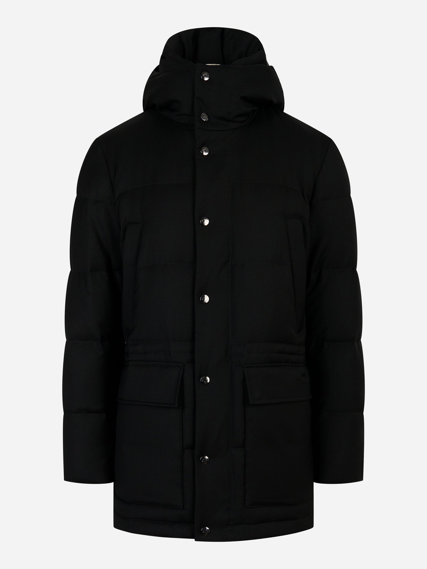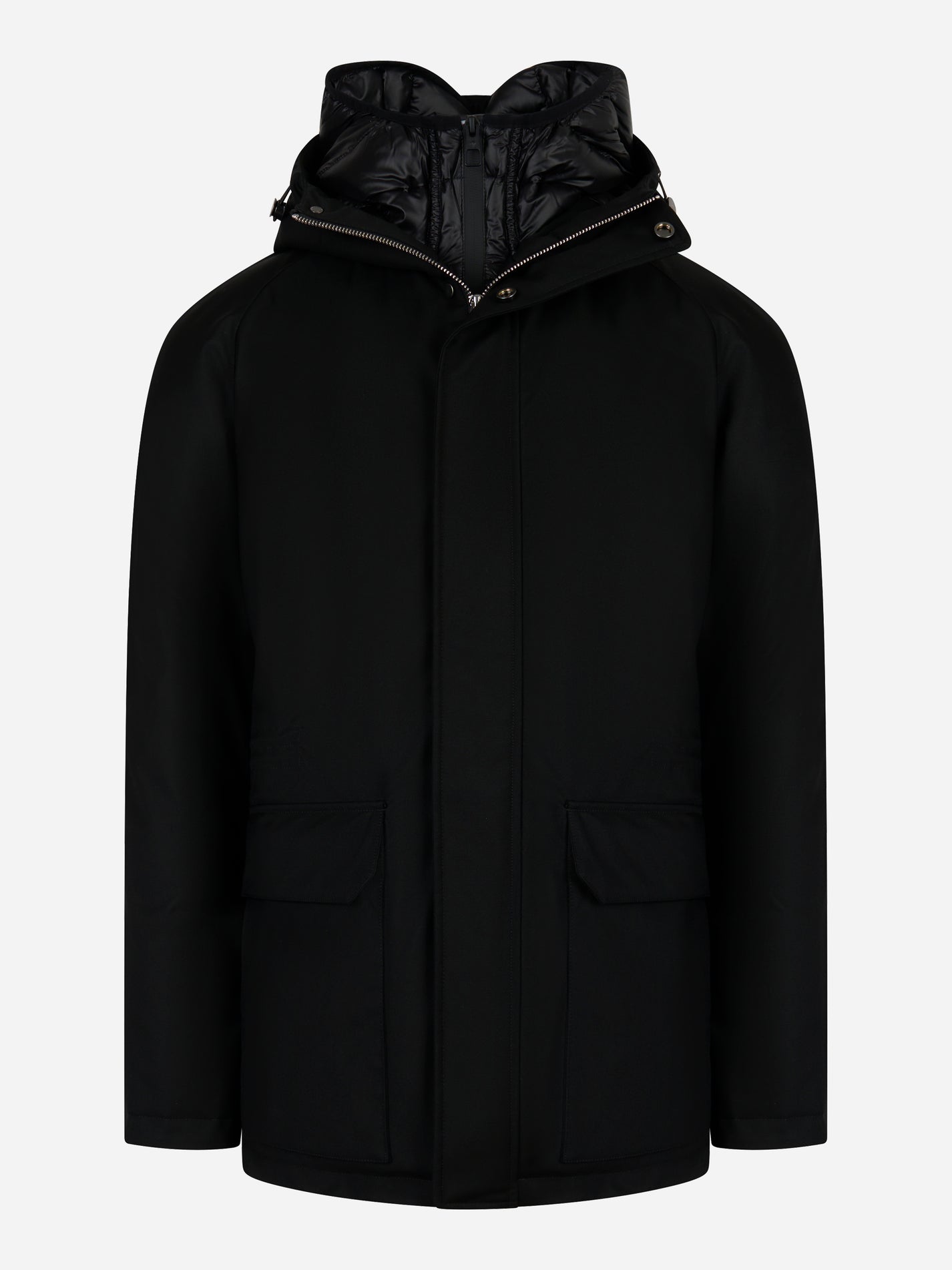 Piumino lungo con cappuccio Nero