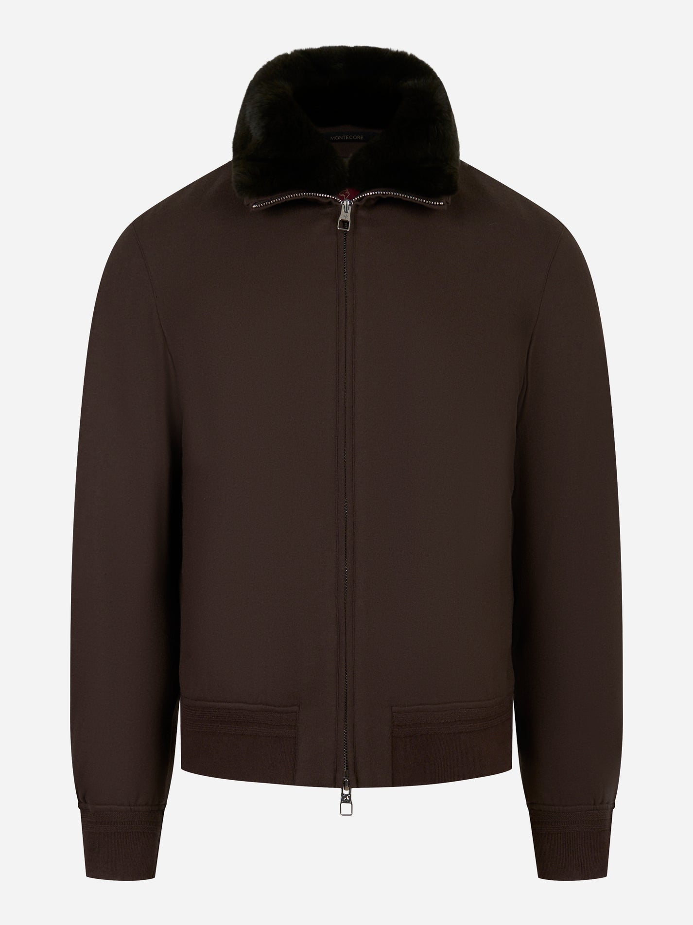 Bomber in lana con collo staccabile in pelliccia Marrone