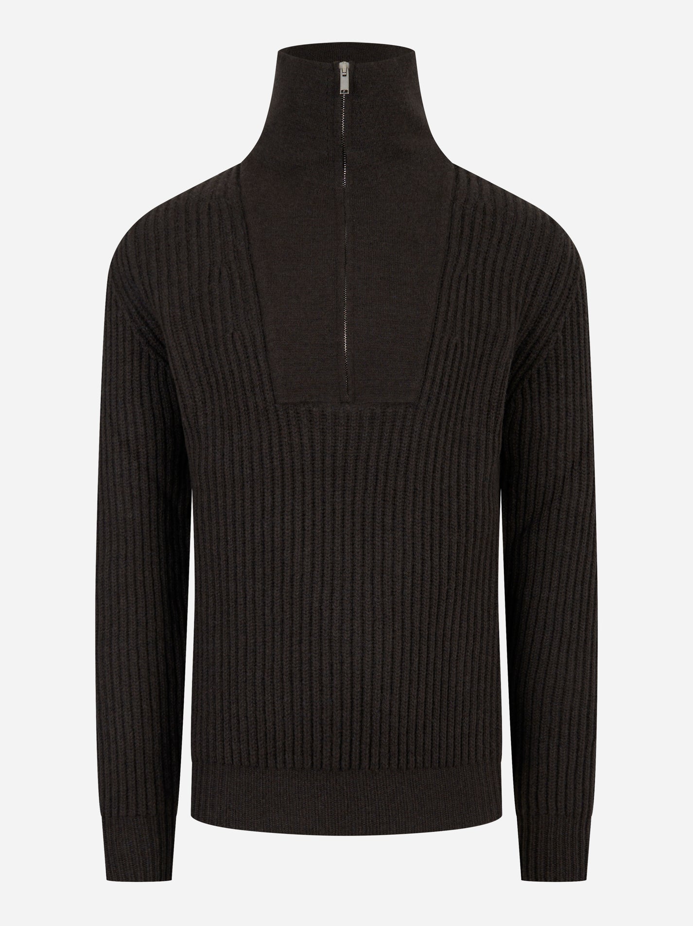 Maglia mezza zip in lana cashmere marrone